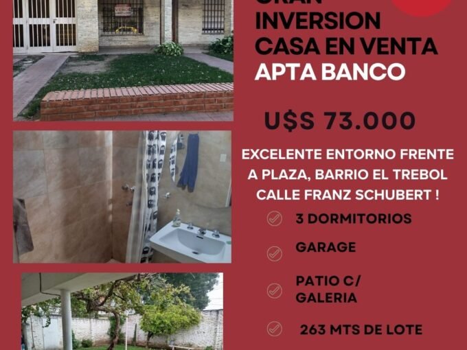 EXCELENTE CASA EN VENTA Bº EL TREBOL ZONA ( APTA BANCO )